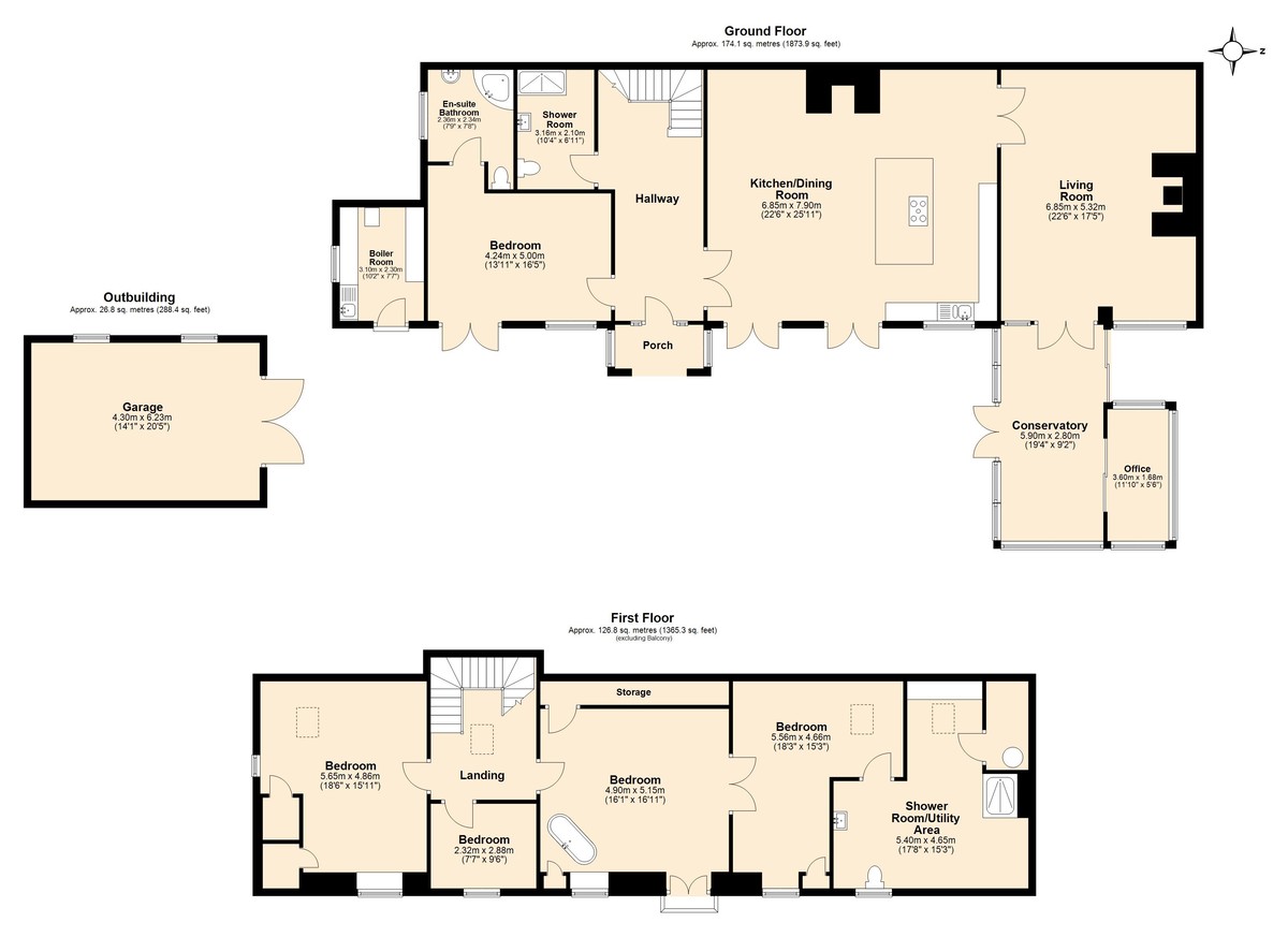 The property also benefits from a detached outbuilding/garage and a secure gated parking area, providing ample space for up to five vehicles.