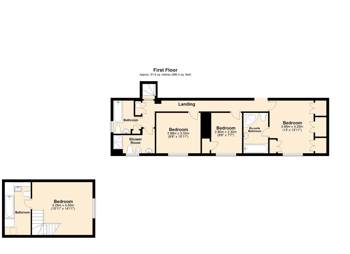 In addition to the main home, two additional areas of Northwood House provide ancillary accommodation, offering a set-up for either multi-generational living or presenting a potential stream of income via holiday rental. The largest area is a self-contained annexe, which can be accessed off the utility room in the main home, or via an independent entrance from the driveway. There is an open-plan living space which has an inset fireplace, giving a good spot for a wood burner or electric stove. The kitchen includes shaker style units, a breakfast bar, a 1 + 1/2 sink, an integrated compact dishwasher and an integrated under-counter fridge. Upstairs, there is a large bedroom, boasting a vaulted beamed ceiling and plenty of natural light floods into this expanse through a skylight and a window that presents a picturesque view over the garden. On this level, there is a bathroom which includes a three-piece suite with a spa bath as well as plumbing for a washing machine.