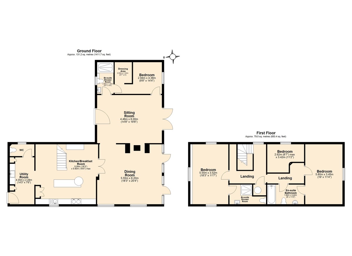 Three first-floor bedrooms, two with en-suite facilities • One ground floor guest suite comprising a double bedroom, a dressing room and a Jack-and -Jill shower room • Two formal reception rooms • Handmade live-in kitchen * Utility-cum-boot room •