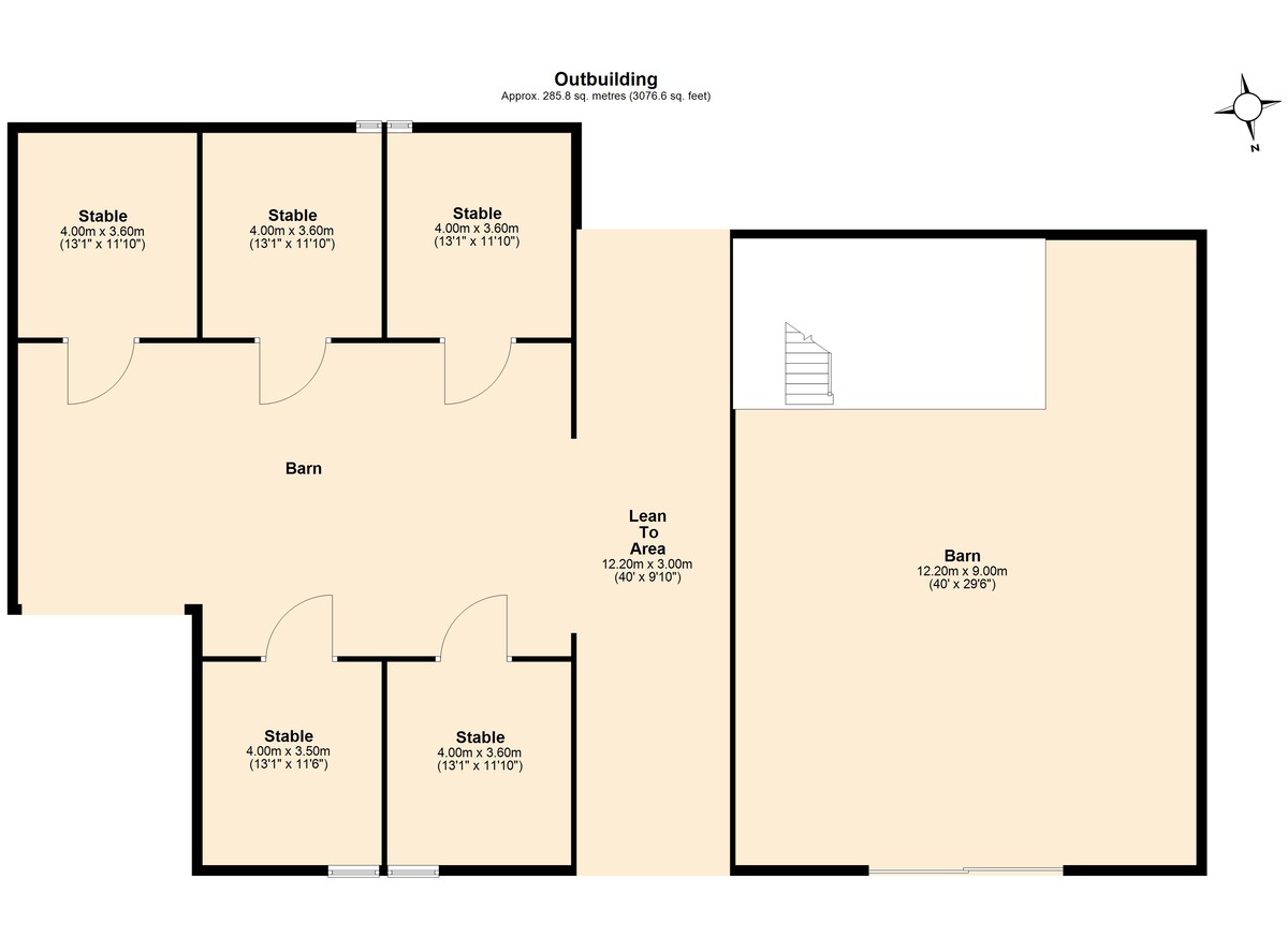 Approximately 10 acres of land, including numerous paddocks – four of which have a mains water supply • Dutch barn with five American-style stables • 20x45m manege • Agricultural barn with mezzanine floor, serving as a workshop & garage • Two double field shelters • Private garden • Secure, gated driveway •