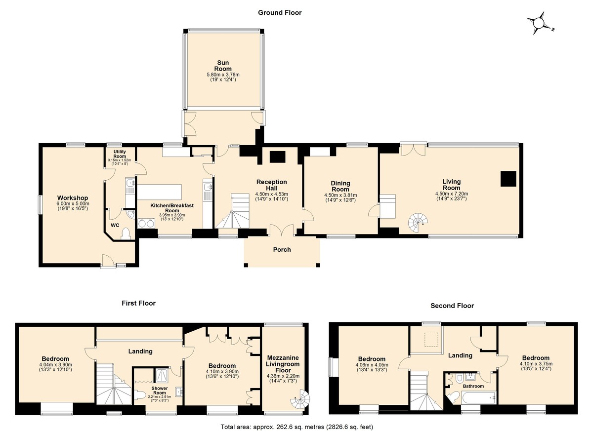 Four bedrooms • Sitting room with mezzanine • Dining room • Garden room • Reception hall • Kitchen/breakfast room • Family bathroom • Shower room • Cloakroom • Utility room •