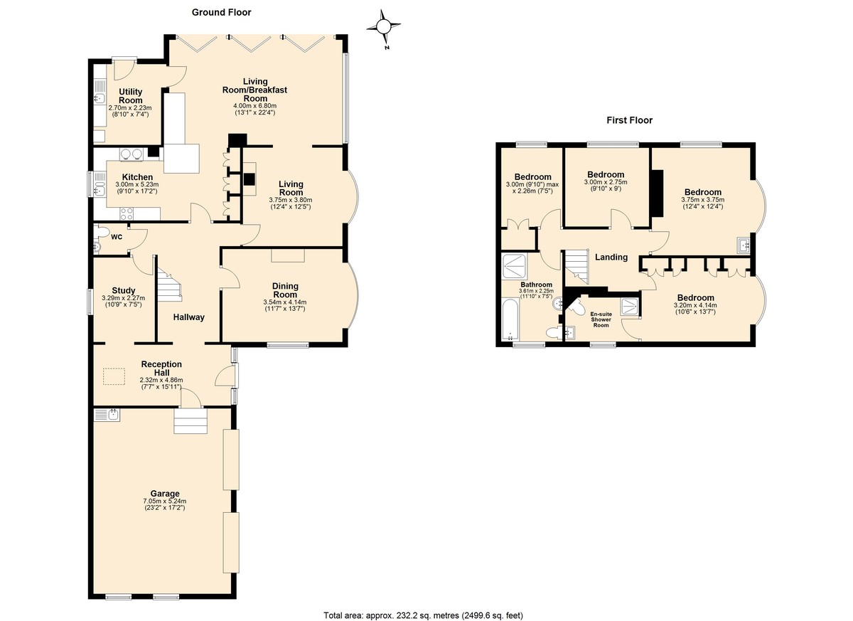 The first floor of the home accommodates four double bedrooms, of which the master is equipped with plenty of fitted storage, including wardrobes and a TV stand. It also has a fully tiled en-suite shower room with a three-piece suite. The other bedrooms are served by the