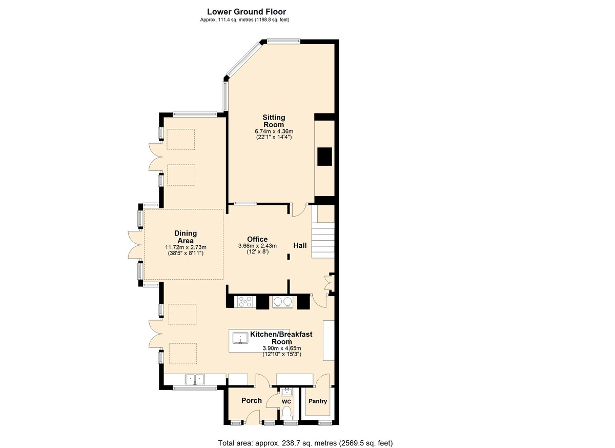 There is also a separate sitting room on this floor, which features a timbered ceiling, a log-burning stove and an impressive bay window with seating.
