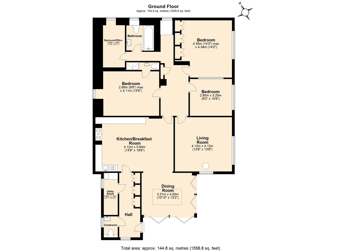 Of the four bedrooms, three are large enough to accommodate double beds, whereas the fourth bedroom is presently utilised as an office. One of the bedrooms boasts an en-suite shower room, and the family bathroom provides additional washing facilities which include a bath with a dual-headed shower, a WC, a basin and a heated towel rail. It is worth noting that the hallway that links the bedrooms also offers a reading nook over a custom-made dog bed and this has built-in storage overhead - presenting an alternative zone for an office. The hallway also features an arch-shaped alcove, which offers a pretty area to display trinkets and family photographs.