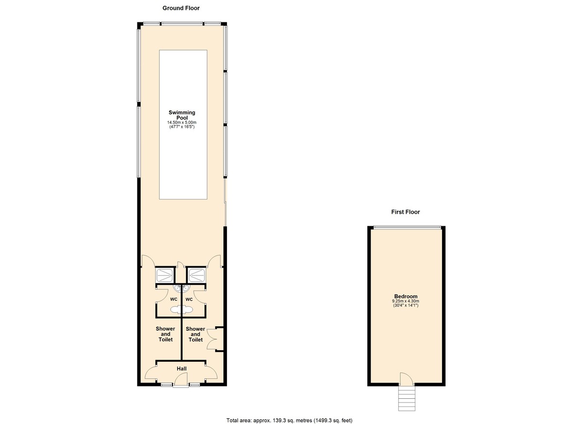 The swimming pool block is complete with both male and female changing rooms, and each one has a toilet and a shower. The room with the swimming pool is beautifully bright as it carries a vaulted ceiling with exposed trusses and a series of full-height windows and sliding glass doors, which also frame the sublime surrounding scenery. An external staircase leads to the first floor, which gives access to a studio which may also be suited as a home office or a guest bedroom. The room itself, much like the swimming pool room, has a vaulted ceiling with exposed beams and trusses.